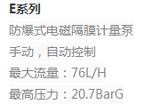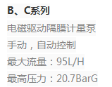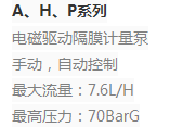 LMI電磁計量泵共有P,A(AA),B,C,E,H,J5等7個系列。用戶可根據流量、壓力、防爆等級、電源、自控等要求選用相應系列計量泵。